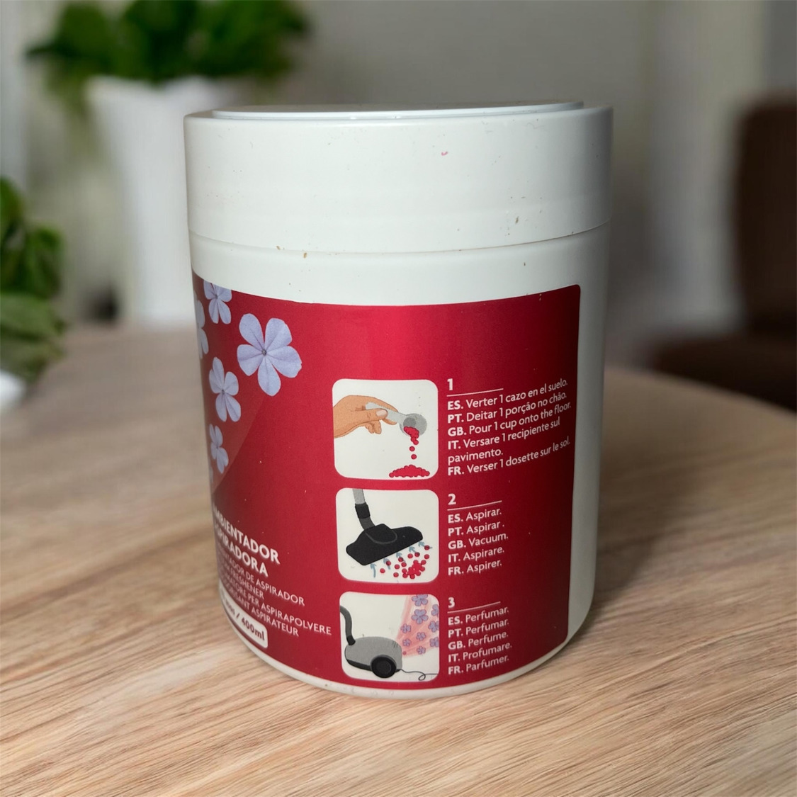 Facile à utiliser, il suffit de verser une petite quantité de poudre sur le sol puis d’aspirer pour diffuser instantanément une senteur fraîche et durable dans toute la pièce 🏡
